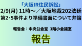 次回期日:6月17日11時~/次々回期日:10月9日11時~ いずれも大阪地裁202号大法廷